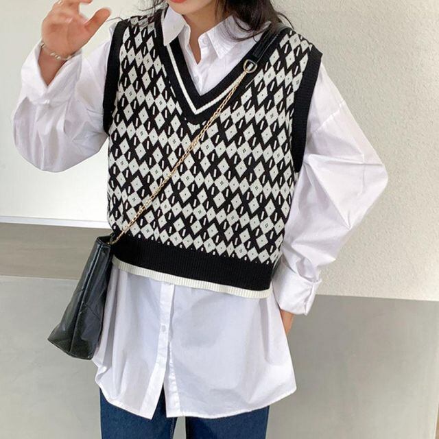 ざっくり開いたVネックがアクセントとなり、顔周りもすっきりとした印象に。