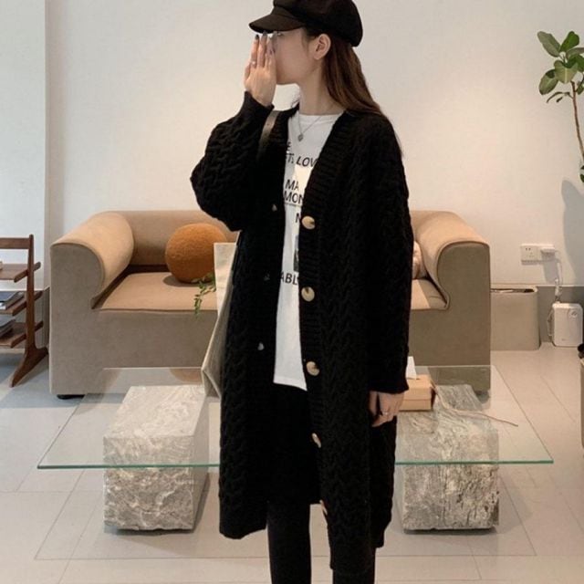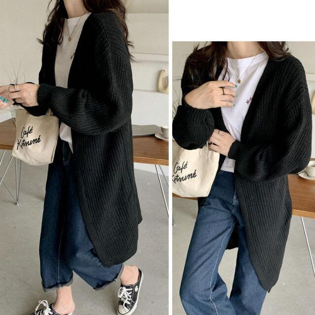 商品名:韓国ファッション ニットカーディガンロング Vネック レディース カーディガン ニット アウター オーバーサイズ 袖ボリューム(宅急便のみ対応)