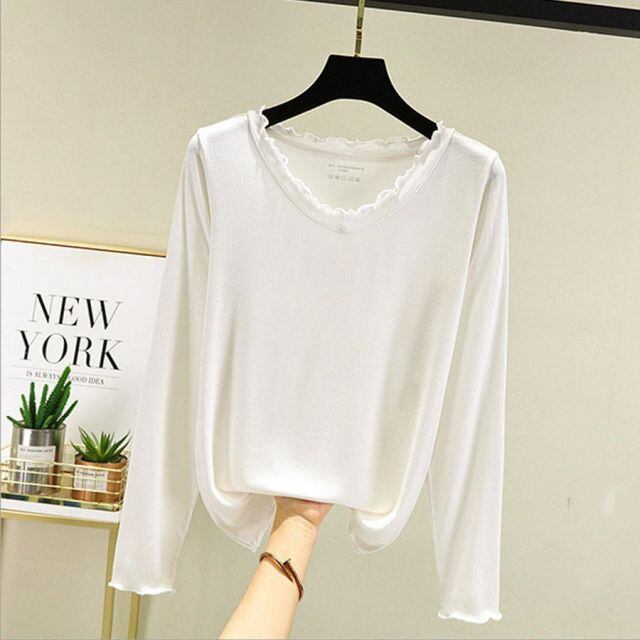 商品名:VネックTシャツ レディーストップス 無地 カットソー 長袖tシャツ インナー黒 カジュアル(メール便送料無料)