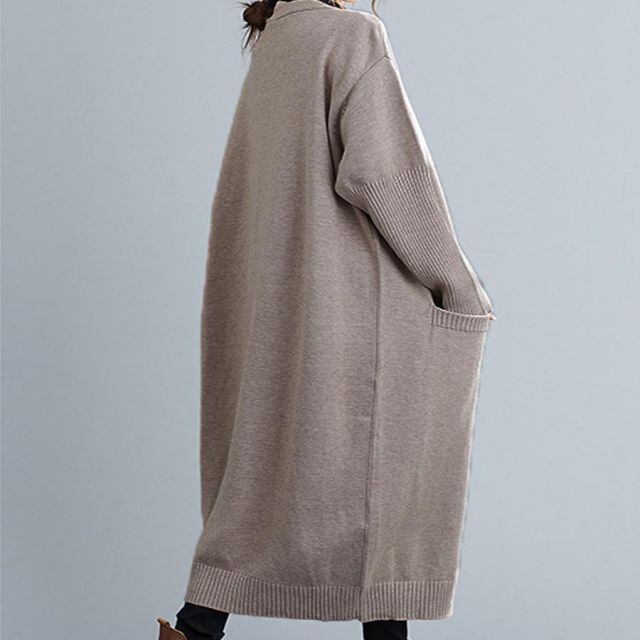 商品名:韓国ファッション ニットカーディガンロング Vネック レディース カーディガン ニット アウター オーバーサイズ 袖ボリューム 秋冬(宅急便のみ対応)