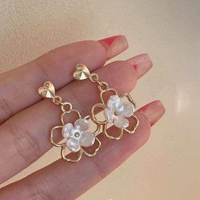 大ぶり花デザインピアス。