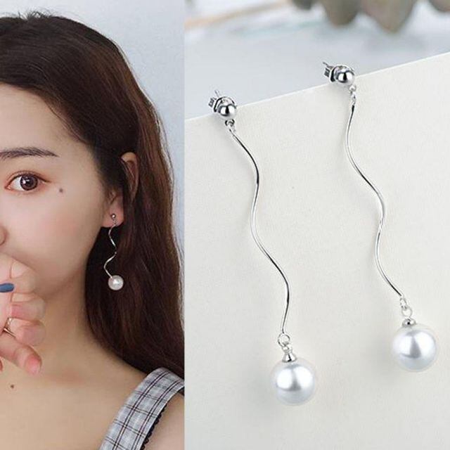 商品名:ピアス パール ロングピアス 揺れる アクセサリー 大人 お洒落 輝く ネークチェーン 小顔効果(メール便送料無料)