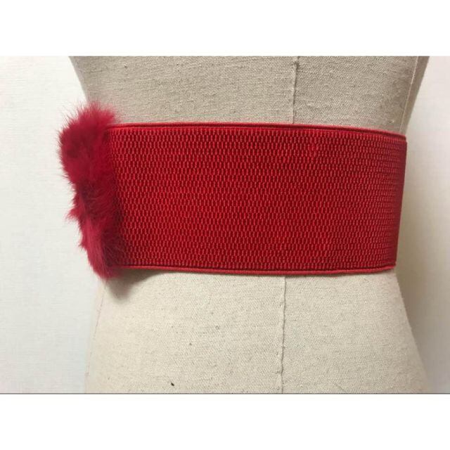 商品名:太ベルト レディース ゴムベルト デザインバックル フェイクファー ベルト(メール便送料無料)