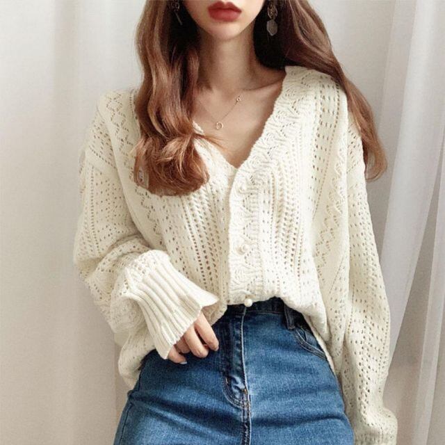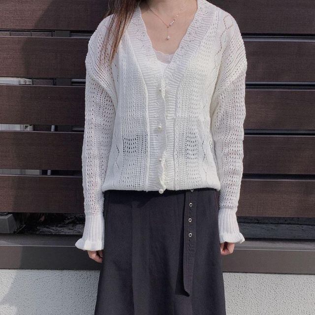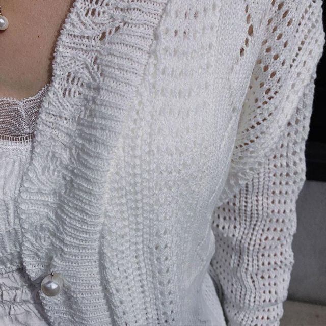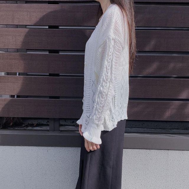 商品名:ニットカーディガン ショット丈ケーブルニット パールボタン トップス レディース カーデ 長袖 ショートカーディガン(宅急便のみ対応)