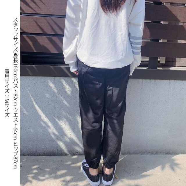 ウエストゴム使用で、動きやすく、リラックス感のあるジョガーパンツ。