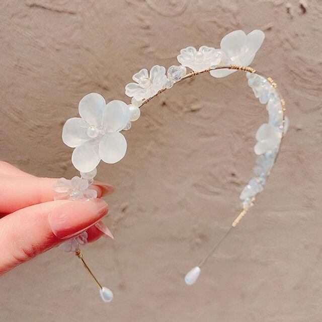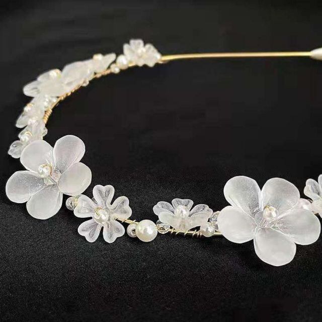 商品名:カチューシャ 花 パール ホワイトフラワー ビジュー 大人 ビーズ ヘアバンド エレガント 結婚式 ヘアアクセ(メール便送料無料)