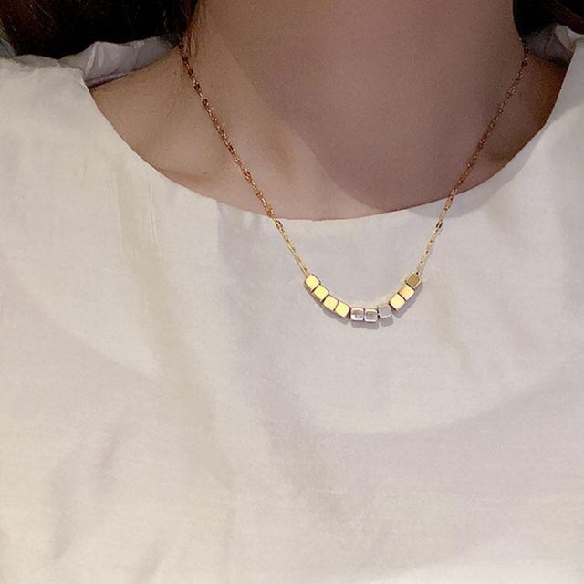 商品名:ネックレス 四角 レディース ショート シンプル 上品 大人可愛い アクセサリー ジュエリー 韓国ファッション スターリング(メール便送料無料)