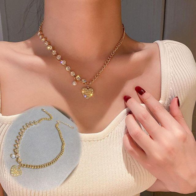 商品名:チェーンチョーカー ハート パール チェーンネックレス 調節可 シンプル デイリー パール 太幅 大人っぽい 女性 レディース(メール便送料無料)