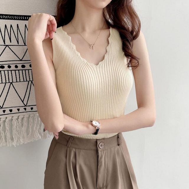 商品名:ニットタンクトップ ノースリーブ インナー ニットキャミソール レディース リブニットタンクトップ(メール便送料無料)