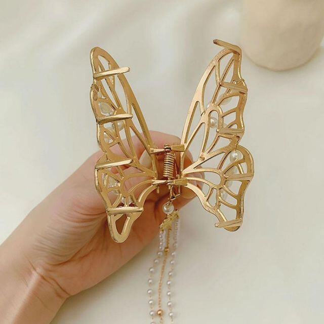 ヘアクリップ バンスクリップ パール 蝶 バレッタ おしゃれ シンプル ゴールド ヘアアクセサリー 髪飾り(宅急便のみ対応)