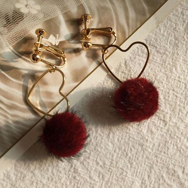 商品名:フープピアス レディース ハート イヤリング ミンクファーチャーム?人気アクセサリー(メール便送料無料)