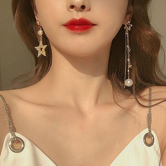 商品名:ロングピアス レディース ラインストーン パール ゴールドイヤリング(メール便送料無料)
