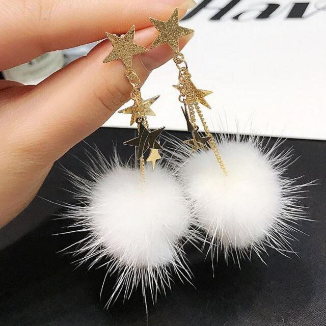 商品名:ピアス キラキラ星 ふんわり ポンポン カジュアル ファーピアス スウィング ファー 揺れる(メール便送料無料)