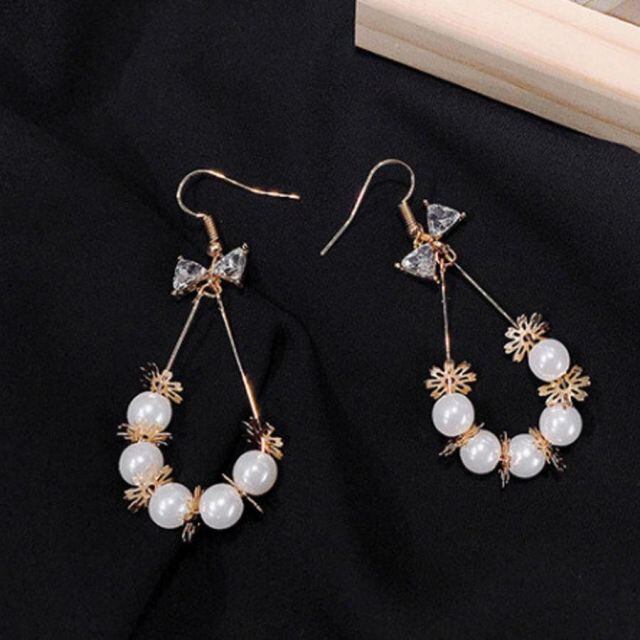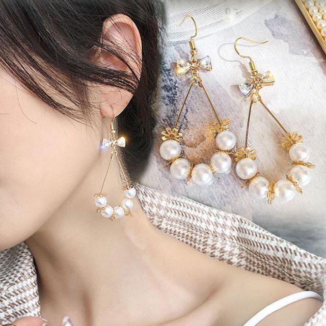 フェミニンリボンテイスト、女性らしさを強調する華やかなパールピアス