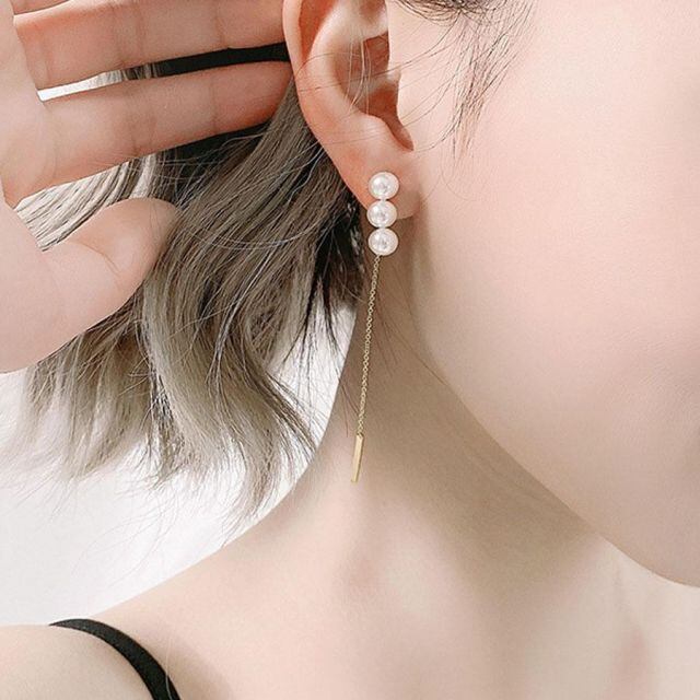 商品名:パール ピアス ロングピアス レディース パール揺れる シンプル オシャレ ベネチアンチェーン(メール便送料無料)