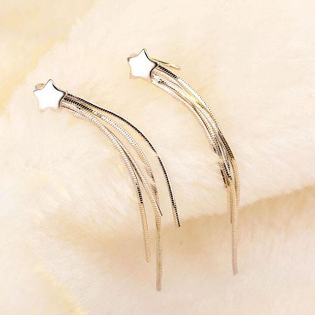 流れ星のようなデザインで大人の輝きをプラスするフックピアス。