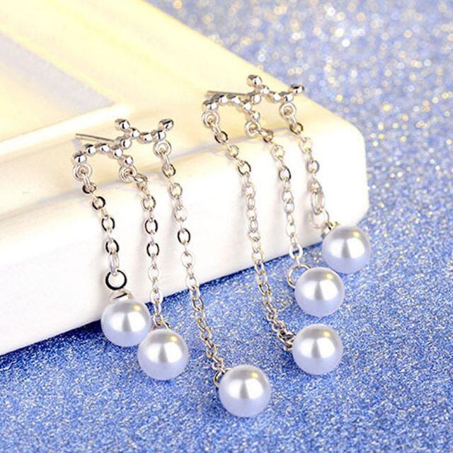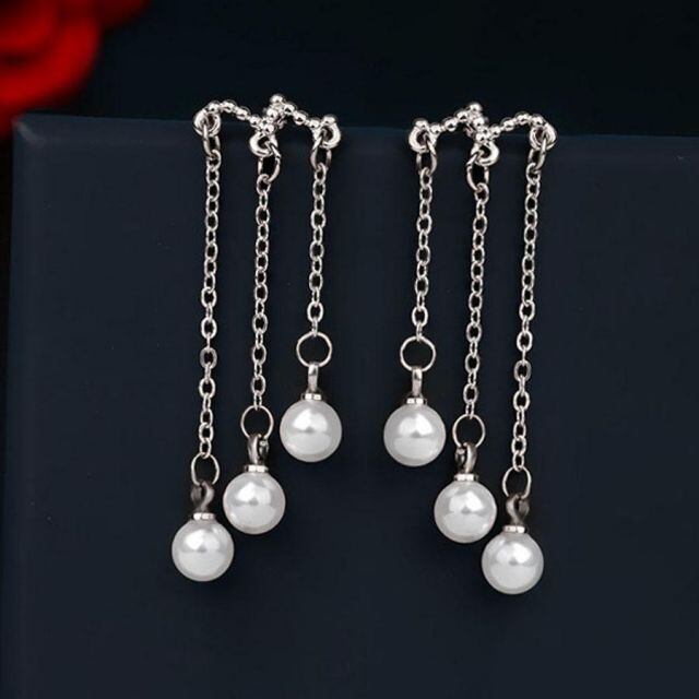 商品名:ピアス パール 揺れる 三連 ロングピアス チェーンピアス シルバー アクセサリー デート 結婚式(メール便送料無料)