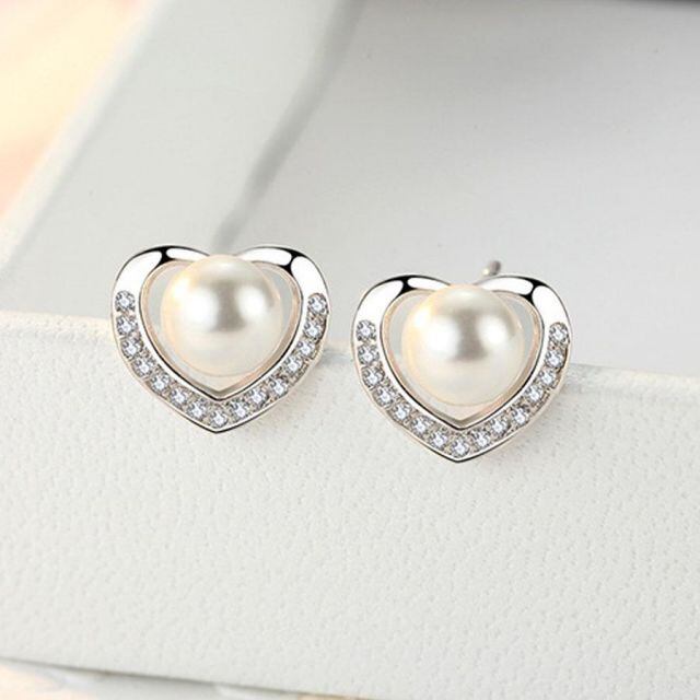シンプルながら存在感あるかわいいハートパールピアス。