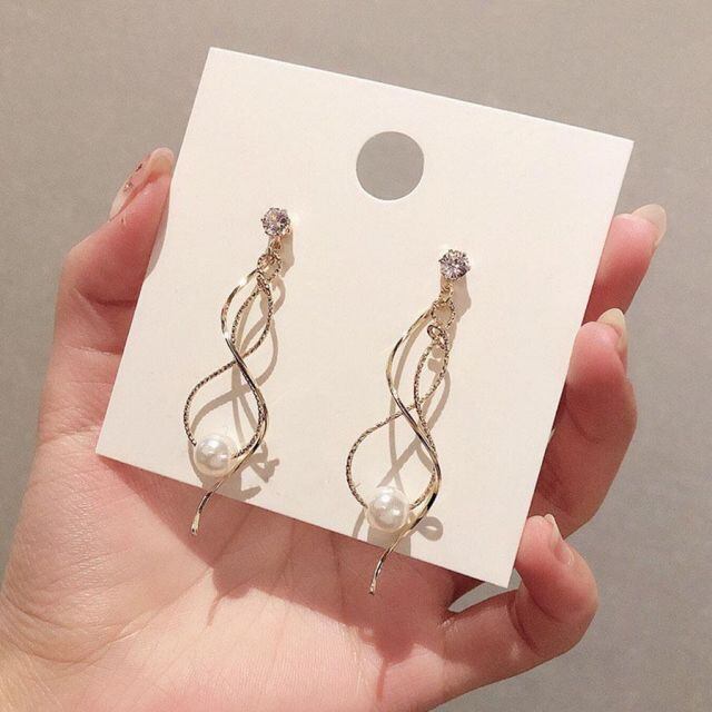 商品名:ピアス パール ロングピアス 揺れる アクセサリー 大人 お洒落 輝く ネークチェーン 小顔効果(メール便送料無料)