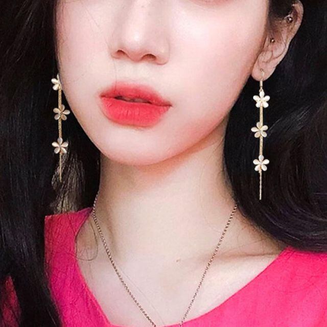 ピアス レディース 揺れる モチーフピアス 花 可愛い イヤリング 人気アクセサリー(メール便送料無料)