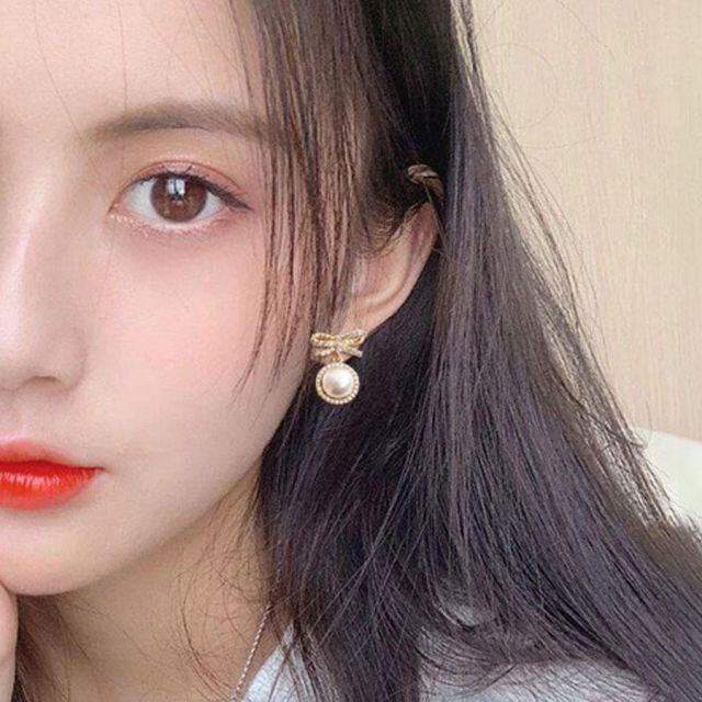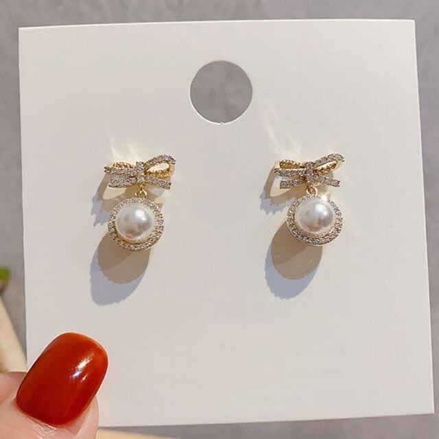 ピアス レディース 揺れる キラキラ かわいい リボン ゴールド 人気アクセサリー 大人 卒園 卒業 フォーマル(メール便送料無料)