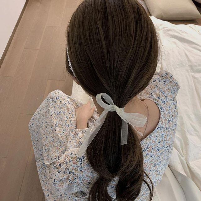 パールとひもリボンと切り替え、ネックネスとヘアアクセサリーで2WAY使える