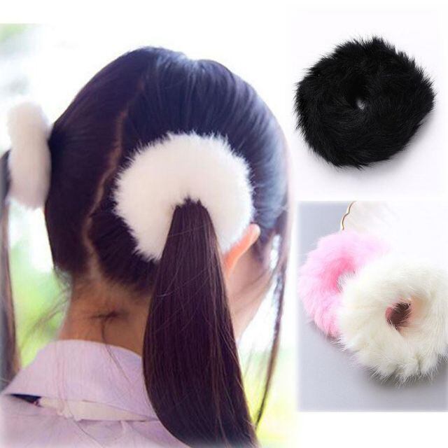 商品名:ヘアゴム シュシュ フワフワ フェイクファー キッズ ヘアアクセサリー 髪飾り こども ホワイト おしゃれ 可愛い かわいい(メール便送料無料)