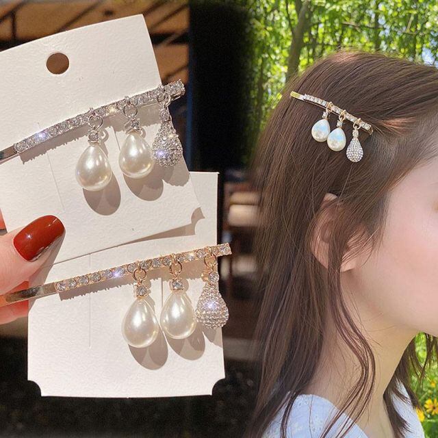 商品名:ヘアピン レディース シンプル ヘアクリップ パールビーズヘアピン パッチンとめ かわいい ヘアアクセサリー(メール便送料無料)