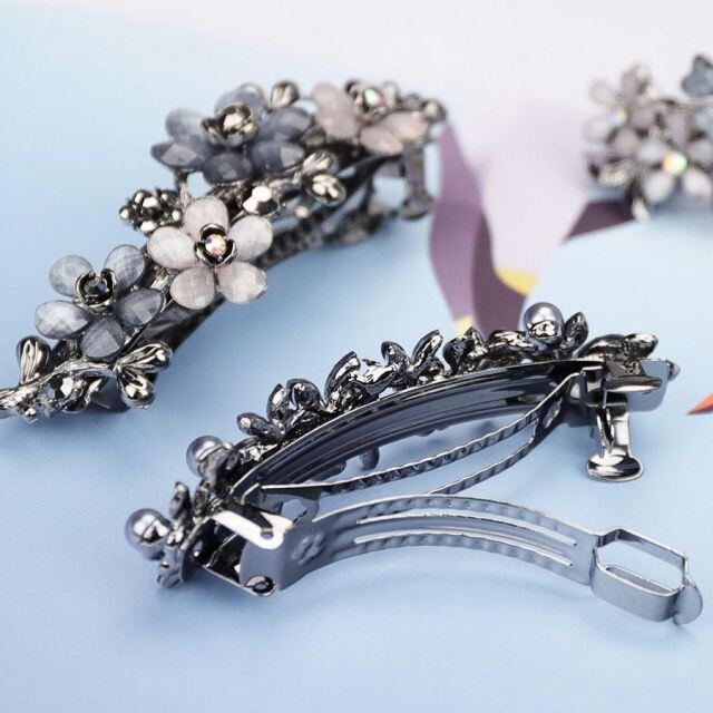 商品名:バレッタ ヘアクリップ フラワーバレッタ 髪飾り ヘアアクセサリー 髪留め結婚式 キラキラ 人気 フラワー 発表会 卒業式 入学式(メール便送料無料)