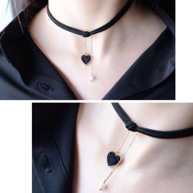 商品名:ネックレス レディース チョーカーネックレス ハート チェーンネックレス フェイクパール アクセサリー ゴールド スエード調(メール便送料無料)