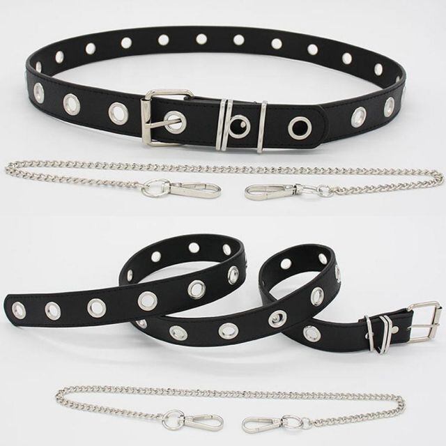 ダブルピンに、チェーンを付けているのがデザインポイント。