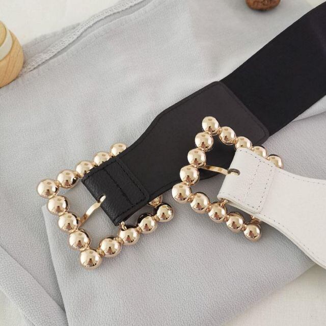 商品名:ゴムベルト レディース パール 幅広 太ベルトバックル付 細見え ラクチン おしゃれ(メール便送料無料)