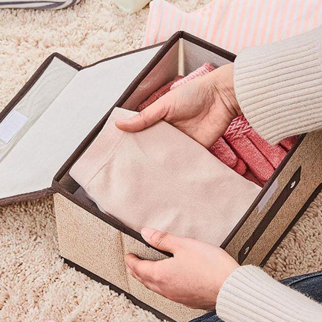 商品名:収納ボックス 小さめ ふた付き 折りたたみ式 収納箱 仕切り 持ち手付 不織布 洗える 軽量 使いやすい 収納ケース(宅急便のみ対応)