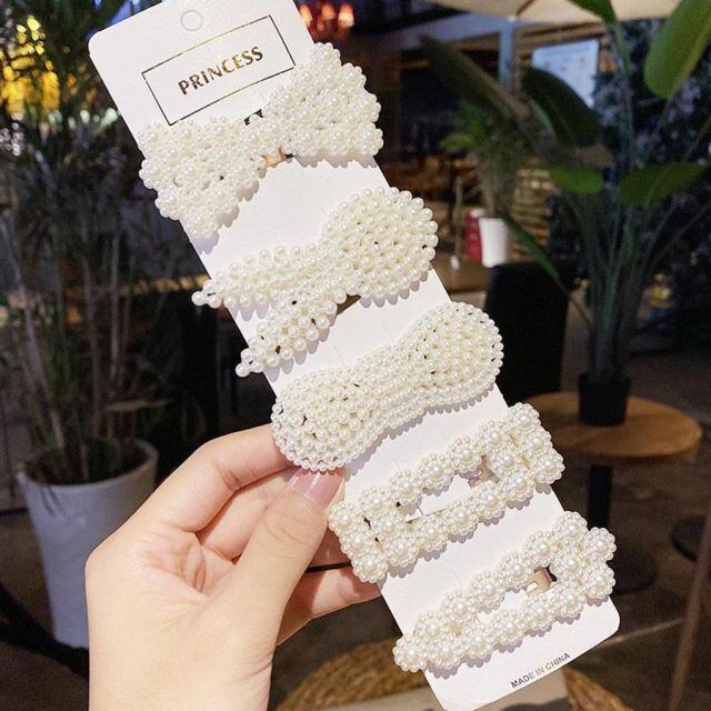 商品名:ヘアピン5点セット ランダム パール ヘアクリップ スリーピン パールヘアピン ヘアアクセサリー 前髪 髪留め(メール便送料無料)