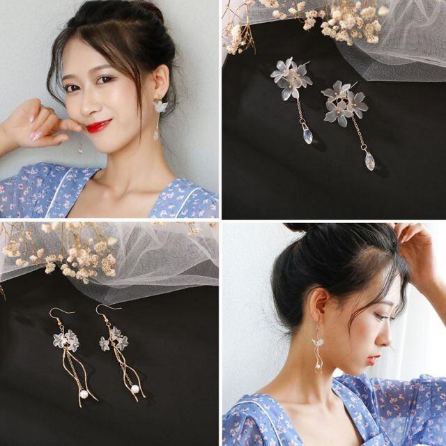 商品名:ピアス 揺れる 花 ロングピアス ロングチェーン デザイン サークル アクセサリー レディース ファッション 可愛い(メール便送料無料)