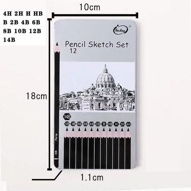 商品名:鉛筆 12本組 六角軸 えんぴつ エンピツ 黒芯 12硬度デザイン缶セット 2B鉛筆 デッサン スケッチ 絵画 ダース販売 鉛筆セット(メール便送料無料)