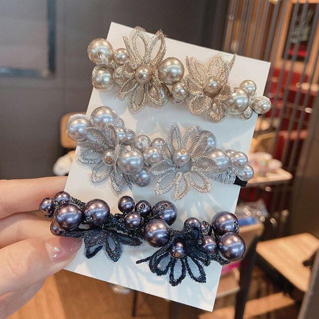 商品名:ヘアゴム はな パール おしゃれ ヘアアクセサリー リボン結び シンプル 髪留め(メール便送料無料)