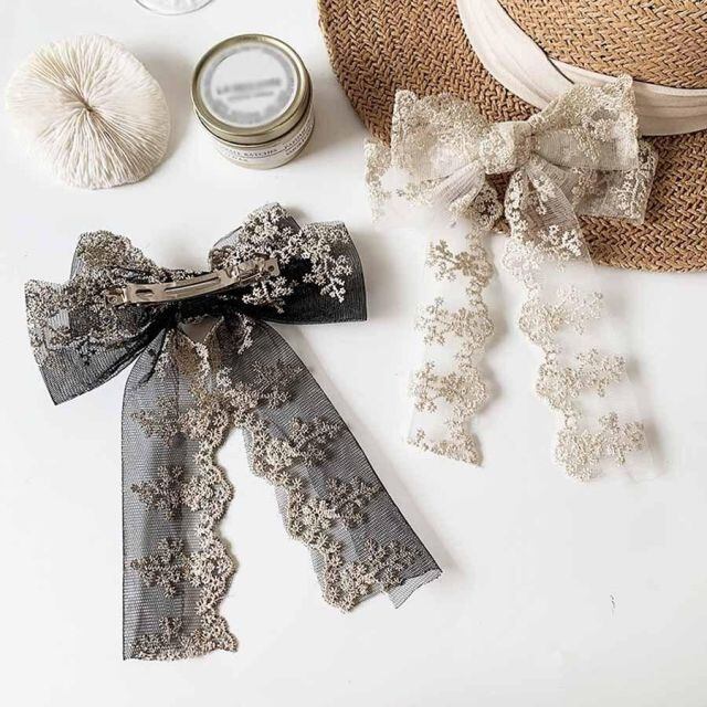 商品名:レースリボンバレッタ ヘアクリップ ヘアアクセ ダブル 清楚 ガーリー エレガント ヘアピン ビックリボンヘアバレッタ かわいい(メール便送料無料)