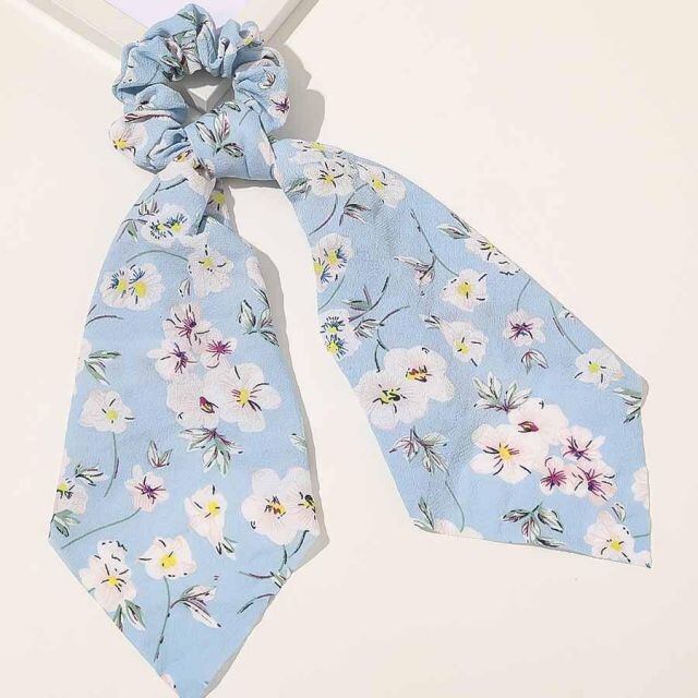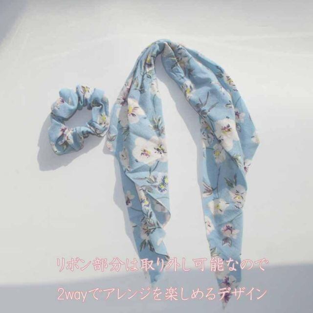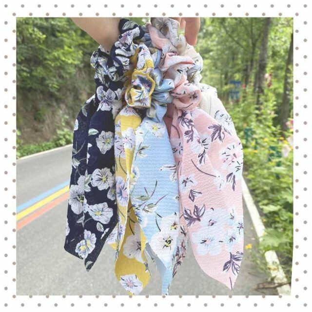 商品名:シュシュ ロング リボン ヘアアレンジ シフォン ヘアゴム おしゃれ 大人 お団子髪飾り まとめ髪20代 30代 40代 50代(メール便送料無料)