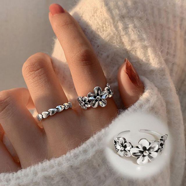 商品名:指輪 花 オープン リング フリーサイズ シンプル シルバー 入学式 卒業式 フォーマル カジュアル 結婚式 パーティ(メール便送料無料)