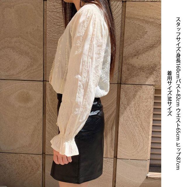 商品名:刺繍ブラウス 長袖 Vネック ノーカラー フリル 長袖 透け感 カジュアル 可愛い 着痩せ ボリューム袖 おしゃれ 通勤OL 韓国 ファッション(メール便送料無料)