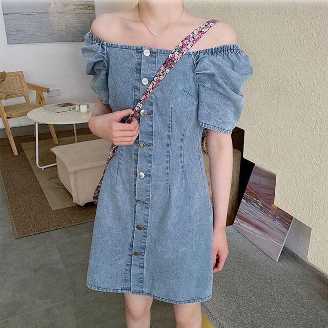 女性の魅力を演出してくれオフショルダーデニムワンピースが新登場。