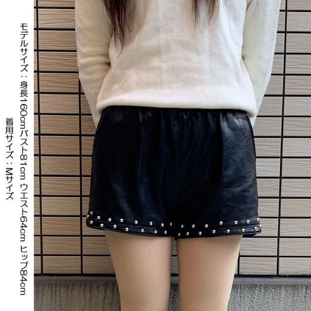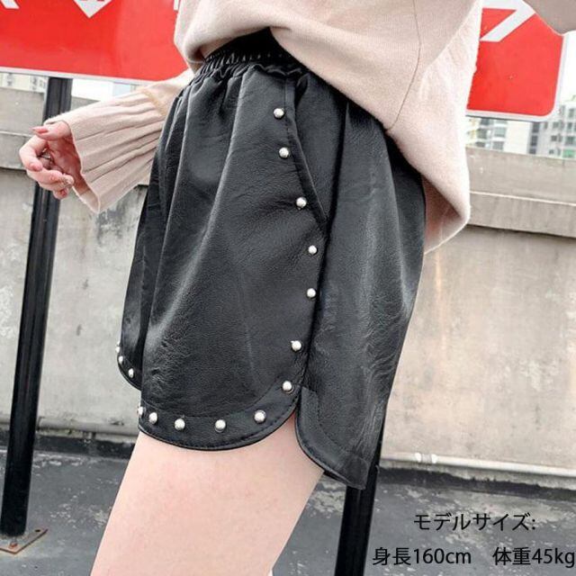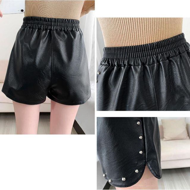 商品名:ショートパンツ レディース フェイクレザー ショートパンツ レザーパンツ 短パン ショーパン 革 ボトムス 黒 ブラック 無地(メール便送料無料)