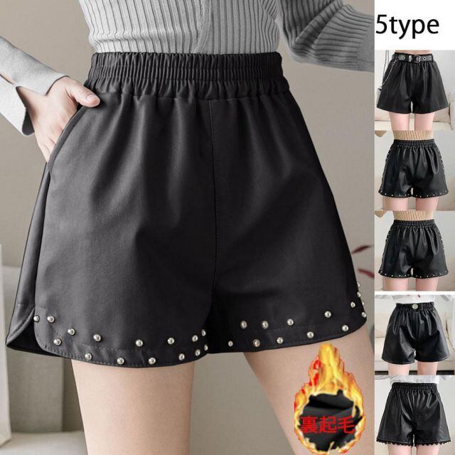 落ち着いた風合いのフェイクレザー裏起毛ショートパンツ。
