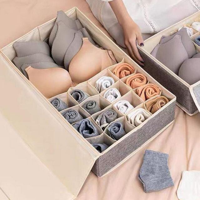 下着収納 17マス仕切り収納ケース 靴下ケース 仕切り収納 収納ケース 折りたたみ 衣類収納 インナーウエア収納 おしゃれ シンプル(宅急便のみ対応)
