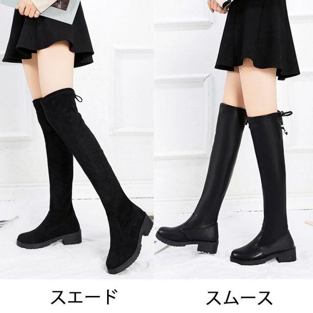 商品名:ニーハイブーツ 美脚 黒 大きいサイズ ストレッチ ローヒール ロング 疲れない ブーツ ヒール ロングブーツ(宅急便のみ対応)