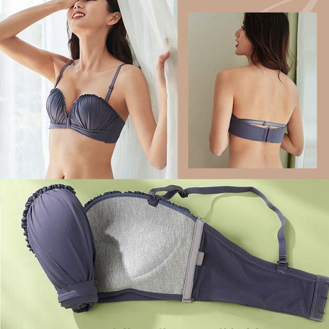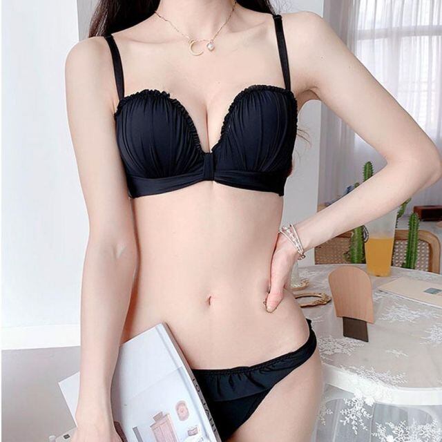 商品名:ブラジャー ショーツ セット ノンワイヤー フリルデザイン ブラトップ ベアトップ 下着セットブラ インナー ブラ 盛れるきれい(宅急便のみ対応)