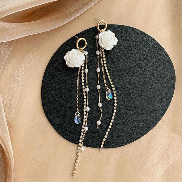 ピアス レディース パール 揺れる ロングピアス 大ぶり モチーフピアス 花 可愛い イヤリング 人気アクセサリー 二次会 結婚式(メール便送料無料)
