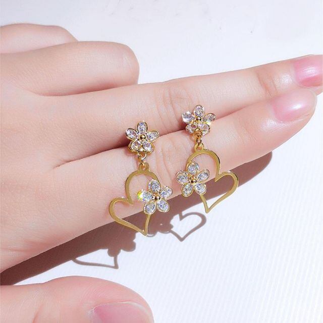 商品名:ピアス 揺れる ロングピアス モチーフピアス 花 ハート可愛い イヤリング人気アクセサリー(メール便送料無料)