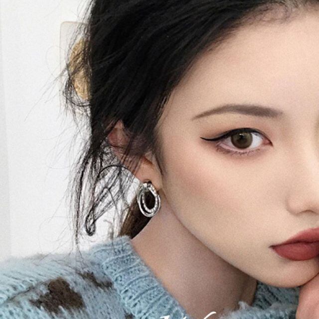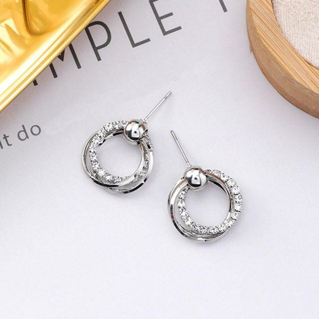 商品名:ピアス レディース 揺れる キラキラ サークルピアス リングピアス かわいい 3連ピアス シルバー 人気アクセサリー(メール便送料無料)